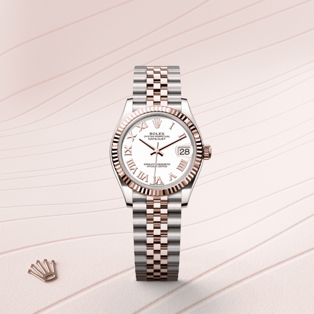 Den rillede krans er et vartegn for Rolex. Oprindeligt havde rillerne på Oyster kransen et funktionelt formål: de anvendtes til at skrue kransen på kassen og hjalp med at sikre urets vandtæthed. De var derfor identiske med rillerne på bagsiden, som også blev skruet fast på kassen ved anvendelse af særlige Rolex-værktøjer for at sikre vandtæthed. Med tiden blev rillerne et æstetisk element, et ægte Rolex-signaturtræk. I dag er den rillede krans fra Rolex et vartegn - og i guld på Datejust 31 her.